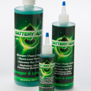 $9.90 – $39.95Price range: $9.90 through $39.95BATTERYADE Battery Additive is an electro chemical catalyst that enhances battery performance. Without BATTERYADE, batteries die a slow death, due to the sulfation process that coats the lead plates inside the battery. [more info]